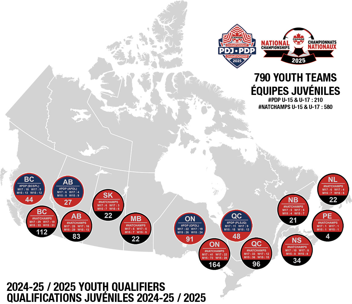 As Canada’s most accessible sport, soccer welcomes more than 750,000 registered players across the nation. This past year alone, 580 youth teams took part in qualifying for the National Championships in the U-17 and U-15 age groups for both boys and girls. From that group, 12 youth teams qualified in each of the four divisions, with each host venue hosting 24 qualified teams across the week-long event heading into the Canadian Finals on Thanksgiving Monday.