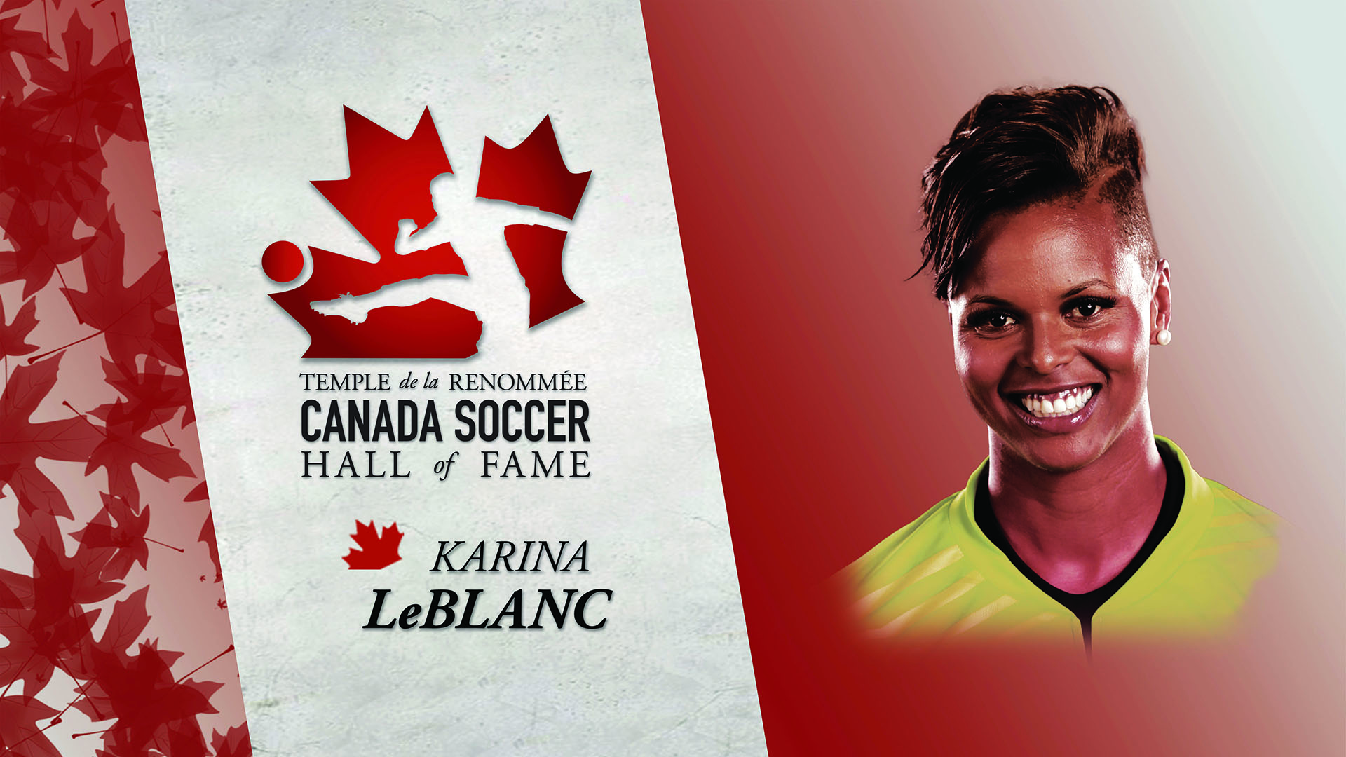 honoured by the Canada Soccer Hall of Fame as part of the Class of 2020, with her official celebration ahead of the Canada international home match on 8 April 2022 at BC Place in Vancouver (five teammates Randee Hermus, Karina LeBlanc, Brittany Timko Baxter, Martina Franko and Rhian Wilkison were honoured)... on 26 May 2018, the Karina LeBlanc Field at Merkley Park was named in her honour by the City of Maple Ridge... she was celebrated as part of the London 2012 Olympic soccer team honoured in the Canadian Olympic Hall of Fame’s Class of 2019 in Toronto on 23 October 2019 (she was one of 18 players that attended the event)... she was part of the Canadian team that won the 1998 Concacaf Championship, recognised as a Canada Soccer Team of Distinction...